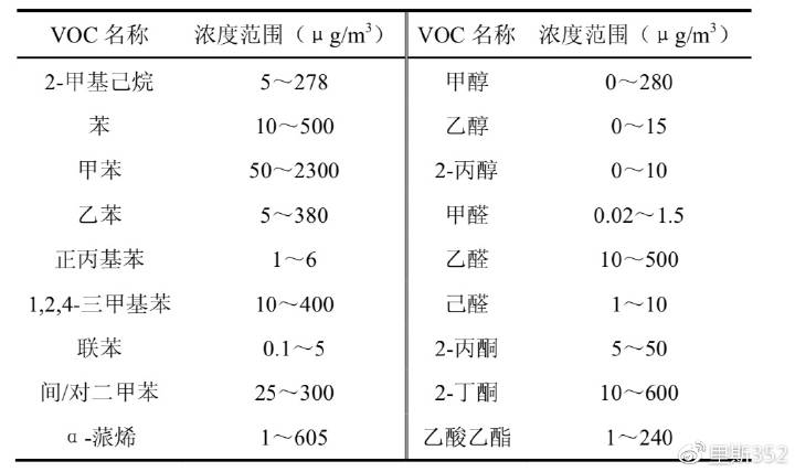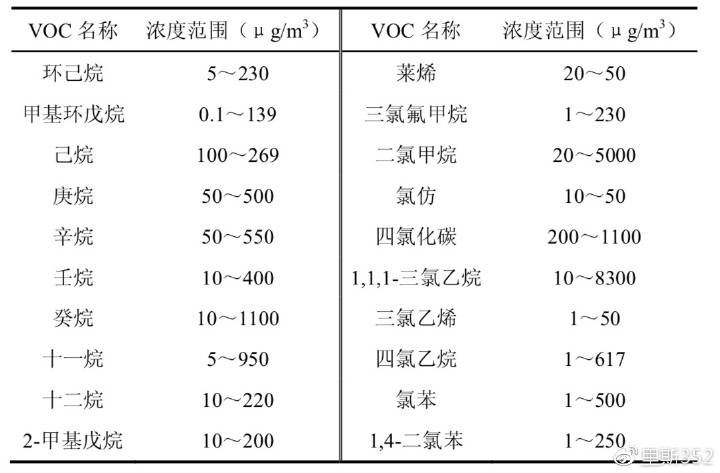 當我們過分關注甲醛時,往往忘記了:甲醛僅僅是室內氣態污染物的冰山一角,在我國,室內常見 VOCs 的濃度範圍見下表[3,4]所示: