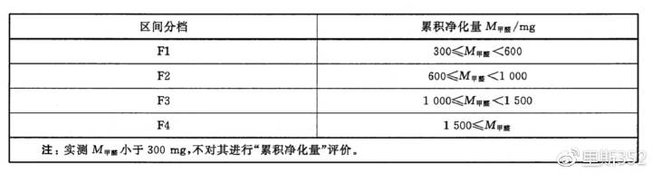 關於淨化器去除甲醛的壽命請參照空氣淨化器國標(GB/T 18801-2015)中的甲醛CCM值(累積淨化量),分為F1-F4級,等級越高則代表壽命越長(表格中的M甲醛即為實測CCM值):