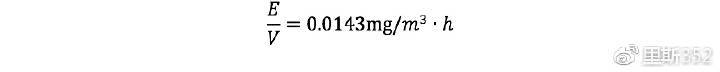 帶入:C=0.1mg/m³,K=0.1次/h, t=12h,解出E/V,每立方米空間“甲醛釋放速度”: