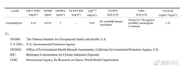 結論1:美帝關於甲醛濃度的限值最為嚴格,其中NIOSH規定甲醛平均濃度限值為0.01968mg/m³,加州環保局(OEHHA)規定甲醛平均濃度限值為0.009mg/m³(援引文章中的0.003mg/m³為2014年以前的限值,目前已經被機構上調為0.009mg/m³)。