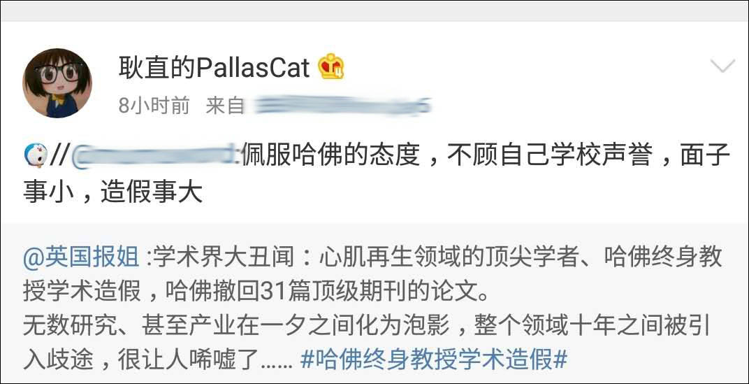 今天,微博知名博主@耿直的PallasCat 就在微博掛出了幾個“對哈佛格外寬容”的人。