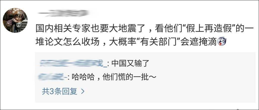 還有人在評論區對學術造假的這名教授喊話説:來中國吧。