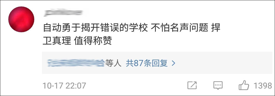 有人説:“勇於揭露自身錯誤,不怕名聲問題,捍衞真理,點個贊。”這條評論收到了1000多個贊。