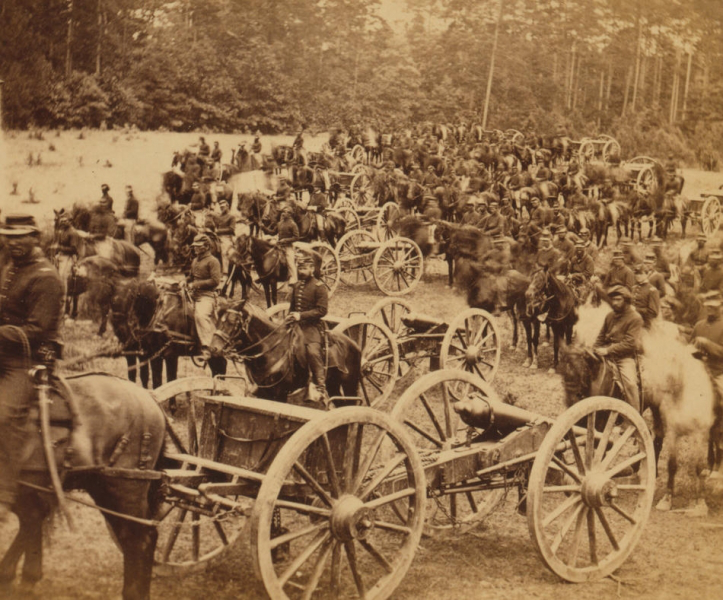 在近代火炮大規模裝備軍隊後,龐大的馬匹儲備就成了列強的標配。早在15世紀下半葉,打炮最大的問題就是動力。1472年米蘭公爵砸鍋賣鐵積攢了十八尊大炮,為了讓它們在野外發射炮彈,他需要用五百二十二對牛與二百二十七輛馬車去拉動它們。法國人是炮擊和養馬的行家,他們第一個把拉炮的動力統一為馬匹。這是因為相對於牛,馬匹更加能承受惡劣的戰場環境;和騾子相比,它們受驚時也更温和。到了16世紀,法國人把大小不一的火炮“動力”標準化。法國人制造的200公斤重、炮彈0.5公斤的福科諾火炮需要2匹馬拉動,1.7噸重、炮彈6公斤的大庫列夫里納需要17匹馬,2噸重、炮彈13公斤的普什卡則需要21匹馬拉動。這些馬可不能連軸轉,它們在滿負荷勞動一天後需要休整,因此當時的法軍認為要把一門火炮弄到戰場上至少需要20匹馬,此外還要有40匹馬拉着滿載着炮彈的馬車。荷蘭人在17世紀初的計算還要多一些,因為他們最大的火炮“卡託文”重量已經達到了5噸半。荷蘭人認為要把一門大炮弄到戰場上需要30匹挽馬,這些馬匹每年會折算2到3成。在18世紀普魯士、法國等國還發明瞭騎炮兵,即騎乘炮兵(指炮手騎乘在馬上行進的炮兵部隊),它要求炮兵在行軍時也騎着馬匹前進,對馬匹的需要就更大。美國南北戰爭時期一個完整六門炮的十二磅野戰炮兵連(實際上大部分都是4門炮)應當包括152名炮兵、154匹馬(這個數字也很難達到,一般是4門炮對應100匹馬)、12輛彈藥車、20輛2輪拖車、1輛運輸車和1輛鐵匠車。