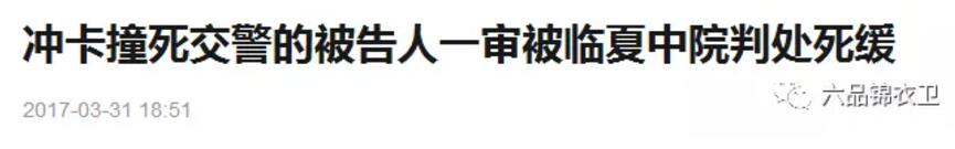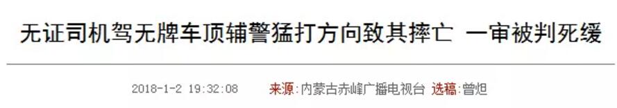 2016年5月,無證駕駛無牌照車輛的馬海龍為逃避執勤民警馬勇的檢查,故意將其撞倒、碾壓致死,雖然他被判罪名是故意殺人罪,但是最終還是被判處死緩。