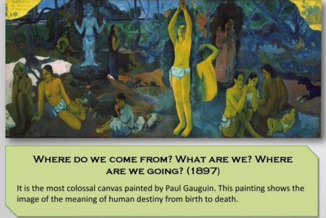 那麼這個世界面臨着什麼樣的一些問題呢 ?法國一位著名的印象派 大師,叫高更,他有幅畫,上面寫的是:我們是誰?我們從哪裏來?我們要去哪兒?這被認為是高更之問。