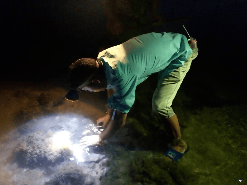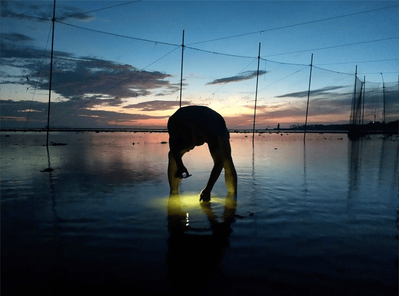 淺水的海灘,晨曦,電筒燈光,色彩斑斕構成美麗的畫卷!