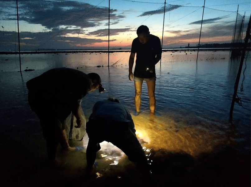 近日清晨5點,楊四川來到海南臨高角昌拱村海邊,和當地漁民一同趕海體驗艱辛與喜悦。
