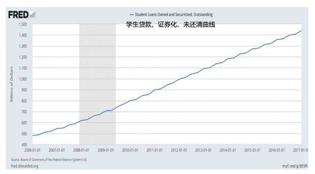 根據美聯儲2017年第一季度的數據,全美學生貸款金額達到一萬四千四百億美金。