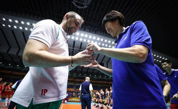 郎平和對手主帥賽前致意。