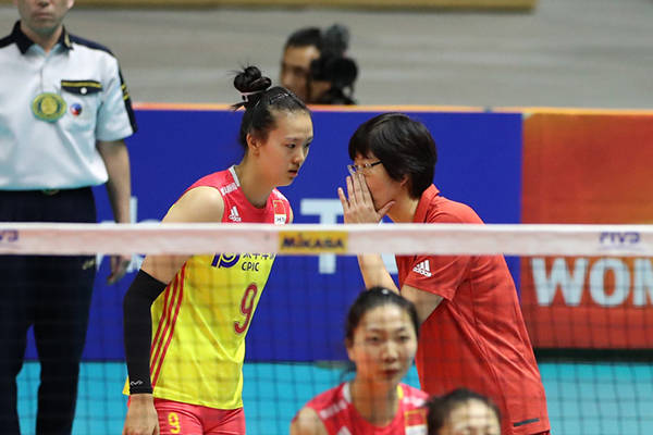 郎平對張常寧面授機宜。