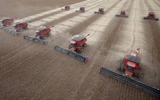 一衣帶水間,在與撫遠一江之隔的俄羅斯哈巴羅夫斯克,哈爾濱東金集團承租的萬畝良田喜獲豐收。在45萬畝金色豆田裏,大型農機具穿梭忙碌着,大豆沿着收割機探出來的輸糧管滑入運糧車車廂,月底前,這些大豆將通過水運陸續被運回國內。45萬畝豆田預計可收穫大豆8萬噸。其中2萬噸將運回國內,可實現貿易額600萬美元。