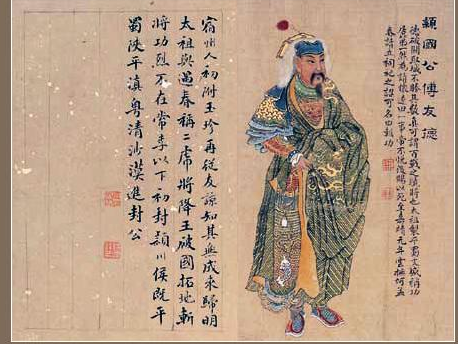 晉王朱棡(gang)沒有天下第一武道會里排名前幾的岳父,卻有名列前茅的親家。他的親家就是傅友德,傅友德在洪武后期的武將中是數一數二的高手,明朝史書中認為他的戰績僅次於常遇春。傅友德的早年非常“祥瑞”,跟着誰混,誰倒黴,在1361年追隨朱元璋後才步入名將行列。由於加盟較晚,他算是明軍中的小字輩,也只能同朱元璋的兒子聯姻。晉王朱棡和燕王朱棣是死對頭,朱棡在北方邊境事務中的發言權高於朱棣,他們兩人的爭鬥甚至讓朱元璋苦惱。有這兩個名將幫忙,朱棣即使和三哥開戰,也是凶多吉少。萬幸的是,朱允炆被冊封后,朱元璋就把懷疑的目光對準了朱棡,傅友德和馮勝先後被殺。朱棡也在1398年去世,朱棣終於有了和侄子叫板的可能。