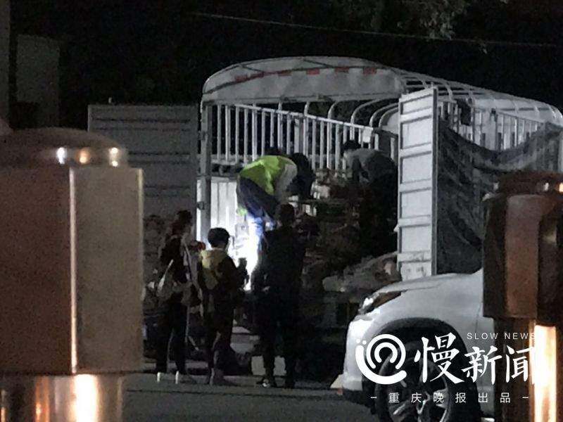 隨後,將從客車上卸下的狗裝載完畢後的貨車,駛入了走馬派出所。志願者和貨主也都趕往走馬派出所,同時九龍坡區農委動物衞生監督所的工作人員也在接到志願者舉報後趕往走馬派出所對涉事犬隻進行調查。