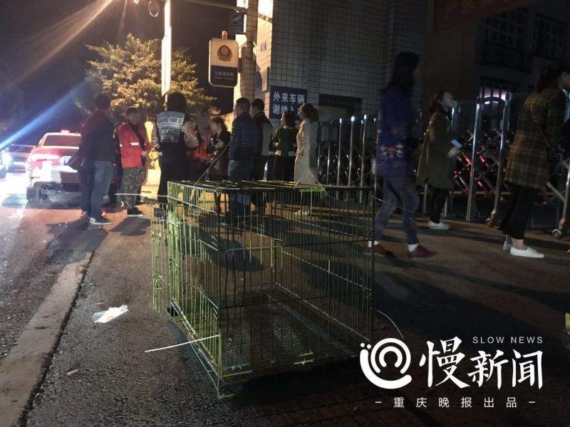 10月18日晚,對家住在重慶市九龍坡區走馬派出所附近的居民來説註定是不眠之夜。樓下嘈嘈雜雜,聚集着數十名等待處理結果的動物保護志願者;現場還有活着的、死去的,上百條被裝箱的狗。