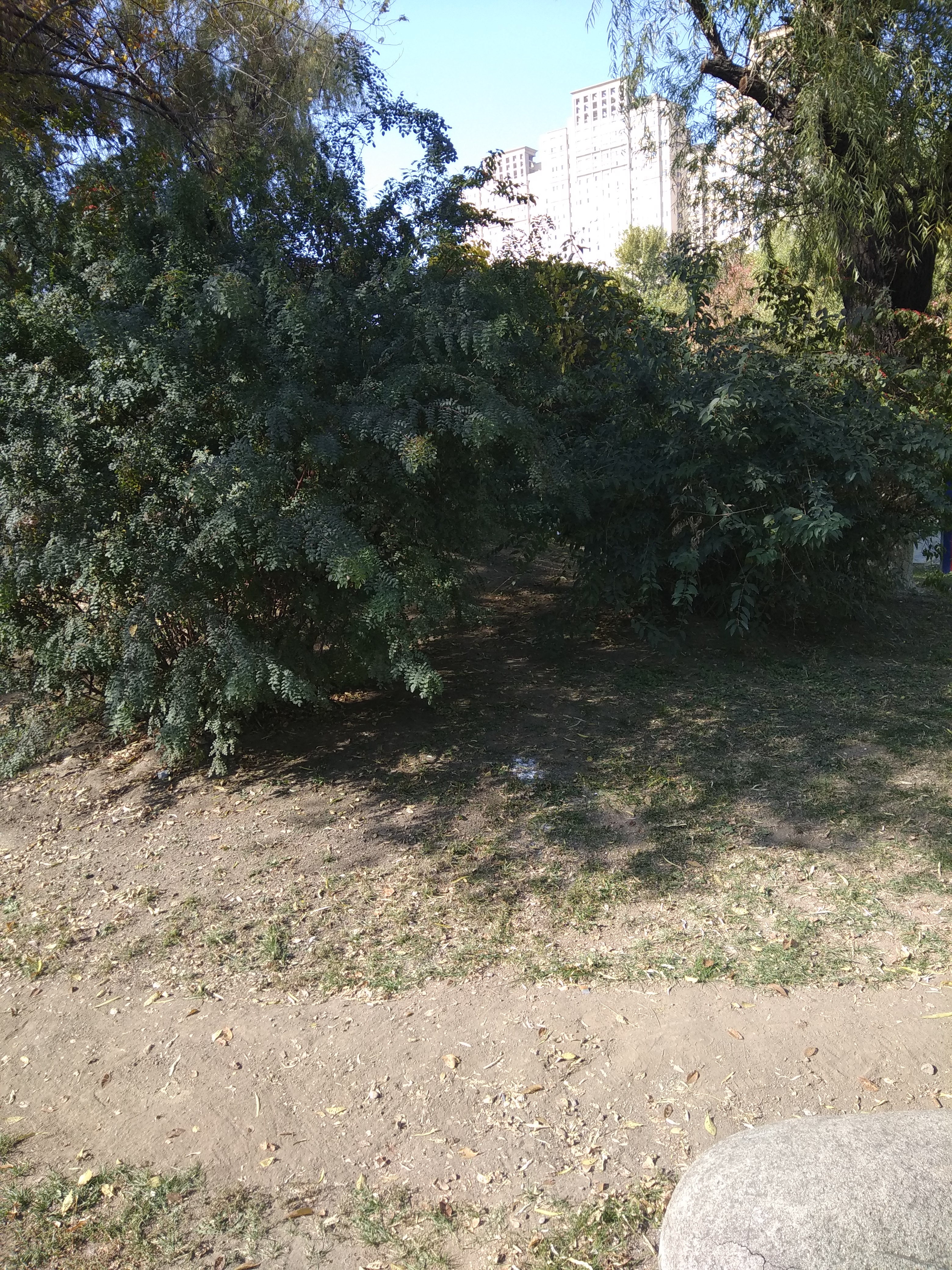 當時發現了這個炸雞店標記的時候,頓時雷的我不要不要的!回到家第一件事就把這個發現發到了觀網風聞與微博,不過可想而知毫無反響,瞬間石沉大海。不過我福(bu)至(gan)心(shi)靈(bai)的突然想起了既然大事我實地調查不了,這個小事我完全可以去實地調查一下啊,**又不花錢(這是重點),還順路(次重點)!**説走就走中午直接到了公園內的標記位置。如圖: