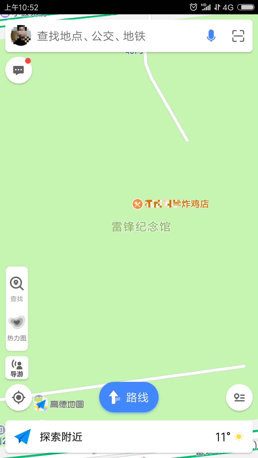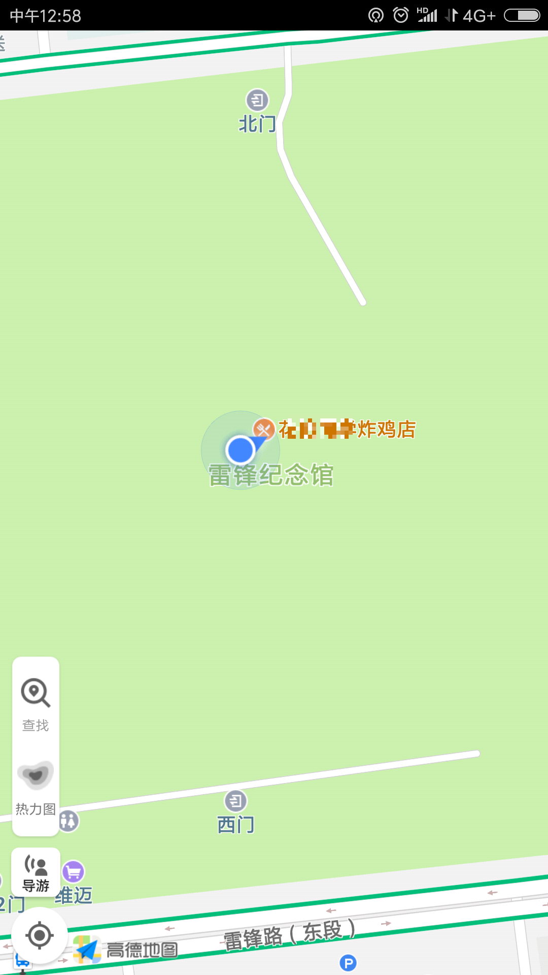 但是不久轉機出現了,我今天偶然間在拼車回望花期間(順便吐個槽,私家車,五塊一位,不知道算不算黑車,不過實際來講挺方便還實惠就是了,就是等得有些長不能上車就走。)閒來無事用高德地圖查一個我沒聽過的地址,無意間發現雷鋒紀念館的地圖標記有問題!如圖: