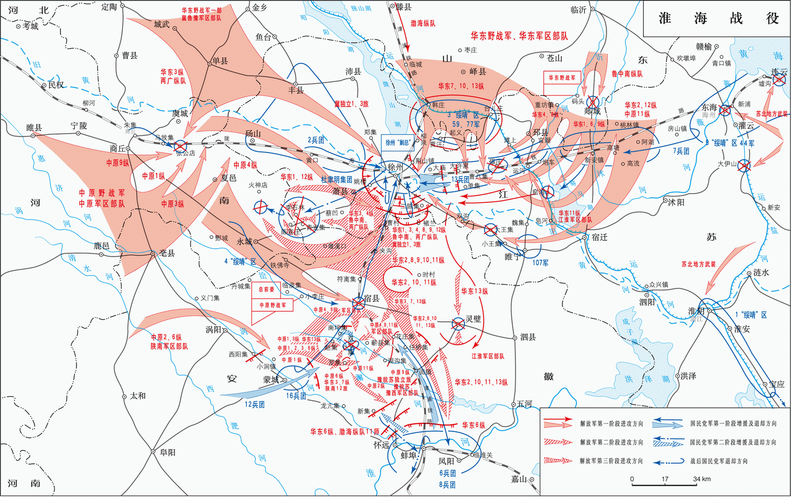 然而,幾乎在軍委發電的同時,陳鄧也於16時發電向軍委報告:“我們率三、四、九縱隊正向津浦線運動。”顯然,陳鄧發電時沒有看到軍委的16時電,電報仍沒有提及攻打宿縣的問題,所以軍委於10日灰丑時和3時連發兩電強調攻打宿縣的重要性:“你們務須不顧一切,集中四個縱隊全力攻取宿縣,殲滅孫元良等部,切斷徐蚌路。”
