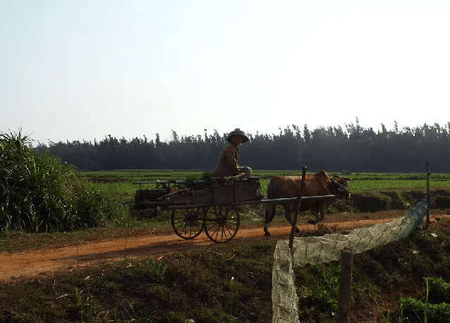 海南的農村就是這樣簡單,一路緩緩地走過,兩個車輪之間恆久不變的距離,從古代延伸過來,就等於農家人的左膀右臂。雖然海南農村的交通有了日新月異的變化,不經意間看到牛車的出現時,像觸摸到了歷史的脈搏。也許若干年後,承載了海南幾千年文明的老牛車,將成為海南人記憶中一種抽象的歷史符號,留在後人的書本里或者博物館裏,但卻會在路人記憶的深處永不停歇地緩緩地前行,更多的則是成為農村田野路上的夢。