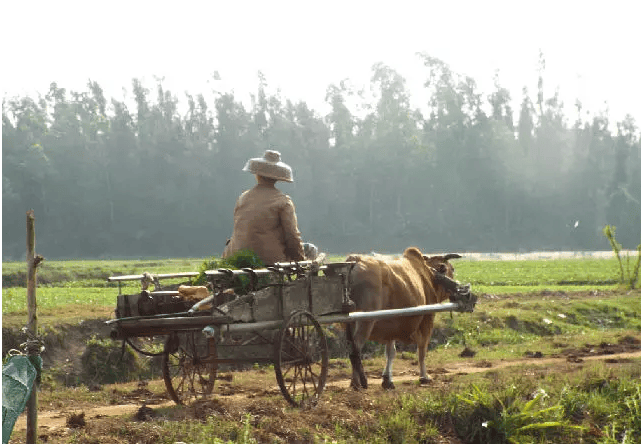 **據瞭解:牛車因其製作簡易、實用深得海南農家人們的喜愛,農家人對老牛車有一種由衷的依賴和情感。農家人樂呵呵地趕着他家的牛車,到田野裏辛勤勞作,老實忠厚的農家人和古典淡泊的牛車,都是一樣蒼老的容顏,似乎相得益彰和協調般配。農家肥運到地裏需要牛車,把收穫的蔬菜糧食運回家需要牛車, 有時候修建房屋的材料等其它,車輛交通不便到的地方都需要牛車搬運。牛車也是海南農家人作為一種交通工具,播撒的一路風塵和一路歡笑。**牛車是清一色的生鐵軲轆車,車輪是實心的,用厚厚的橡膠皮包裹。車輪壓在田野的小路上,時時情不自禁地發出抑揚頓挫的吱吱響聲,像一曲古老的小調或鄉土音樂進入我的耳根,牛車成為空曠寂寥的一道原田野獨特的風景。