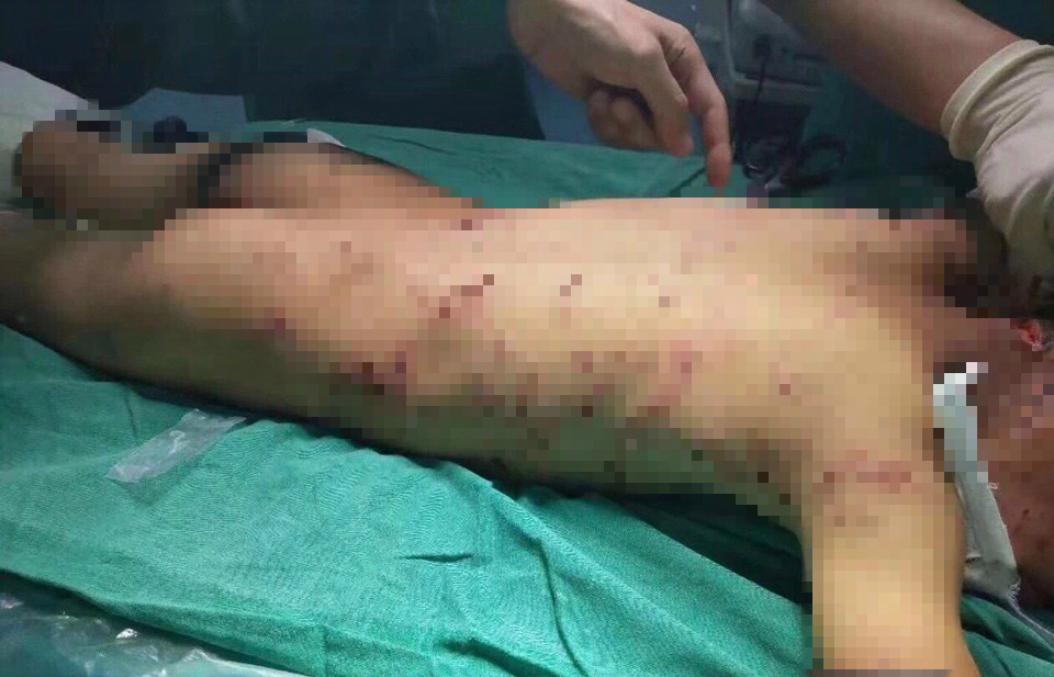 來自酒泉市人民醫院的消息,2018年10月14日中午,我院神經外科接到玉門市醫院緊急求援電話,一名6歲男性患兒,被七八隻流浪惡犬圍攻咬傷,傷情嚴重。傷情主要集中在頭面部,其中頭部有一約8x10cm的頭皮缺損,雙耳、頭部、後頸部、胸部、四肢等多處毀損傷,並存在失血性休克。接到電話後神經外科主任景兆德立即指導當地醫院,糾正失血性休克,保護創面,在保障生命體徵的前提下儘快轉入我院,並指派患兒家屬在事發現場尋找被撕脱丟棄的頭皮組織。