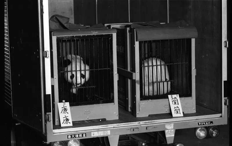當天晚上,這架飛機就飛回了東京,帶着一對來自中國的大熊貓,“蘭蘭”和“康康”。