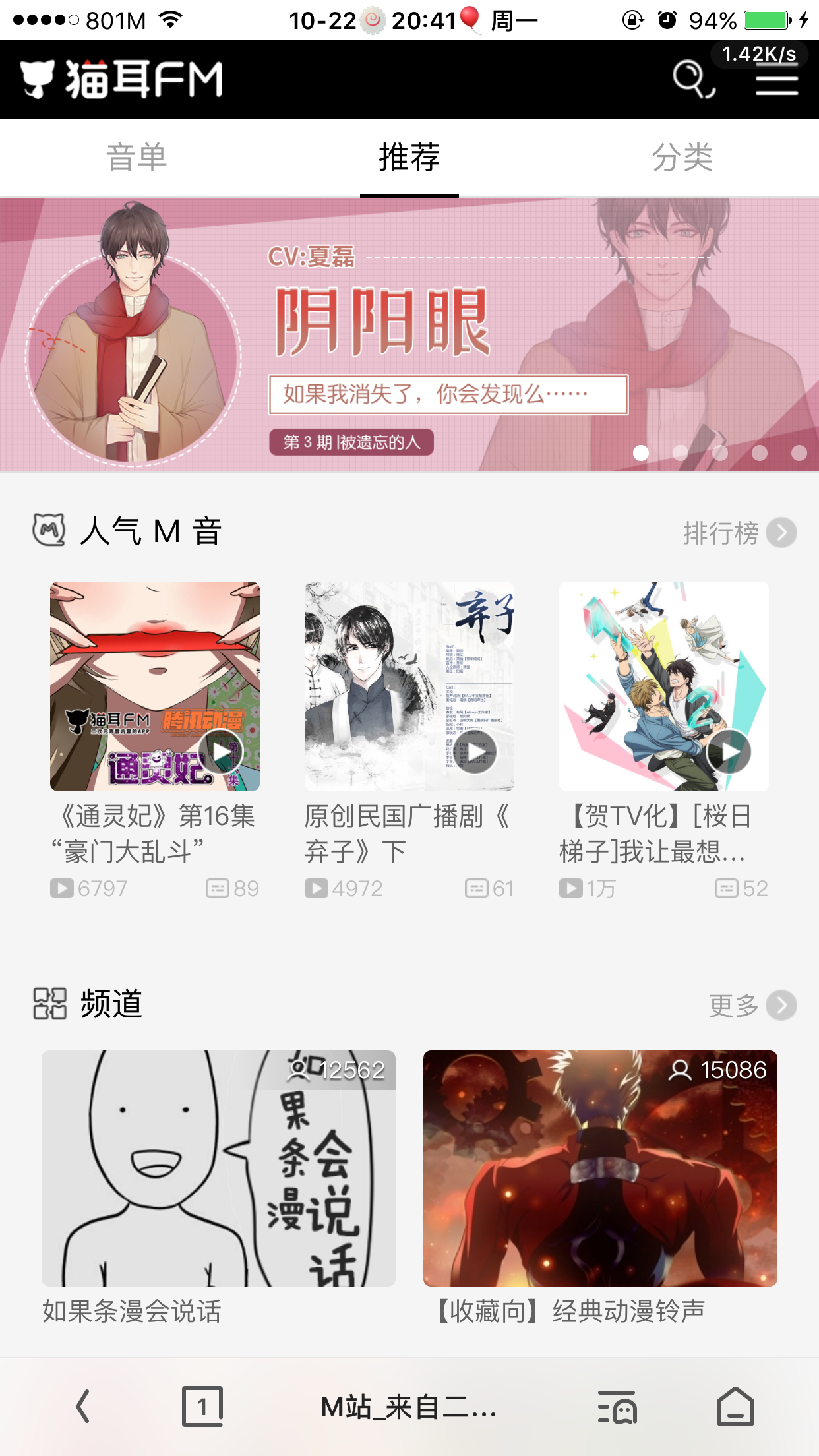 簡介:成立於2010年7月12日,MissEvan彈幕音圖網。目前有DRRR、技術、感動、視屏區,腐屋,活動/聚會等各特色的九個專區。在這裏可以聽電台,音樂,翻唱,小説和廣播劇,用二次元聲音連接三次元。