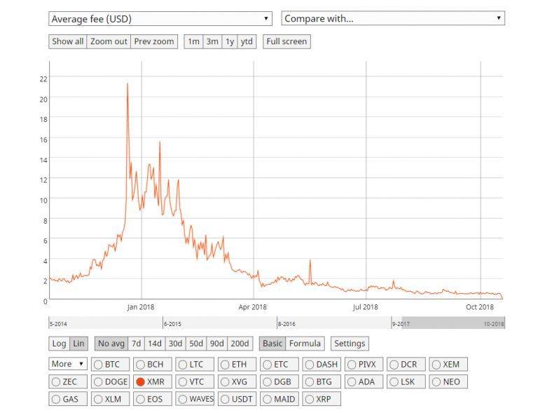 2017年12月,當加密貨幣市場處於牛市,XMR的交易費大幅飆升。當時,Monero (XMR)的價格也觸及460美元。