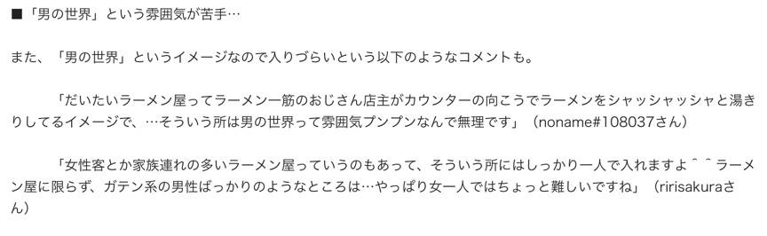 這一段話大意就是,日本的拉麪店大部分都是上圖的結構,並且廚師大部分都是男性。吃拉麪的時候,大家也會發出很大的聲響,所以會覺得這裏是男人的世界。我之前看NHK的《紀實72小時》(超級推薦這個節目)時,會發現拉麪店裏大部分都是男性職員或者勞動力工作者。