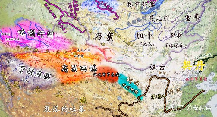 畢竟“生死大唐好”,已經苟延殘喘的唐王朝,仍然是河西走廊軍民的精神故鄉,張議潮被封為“歸義軍節度使”,不過也就是這個時候,少了個吐蕃,卻多了個回鶻,回鶻藥羅葛氏遷入張掖等地,歸義軍成為了和唐朝不接壤的“飛地”節度使,他們也成為和甘州回鶻鬥爭的重要前鋒。