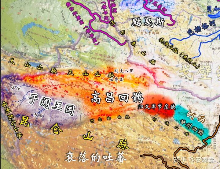 要不説,還是人家回鶻的老主人藥羅葛氏比較聰明,這一波就這麼遷徙到唐朝控制不到的河西走廊,史稱“甘州回鶻”,首領都是回鶻的汗族“藥羅葛氏”。