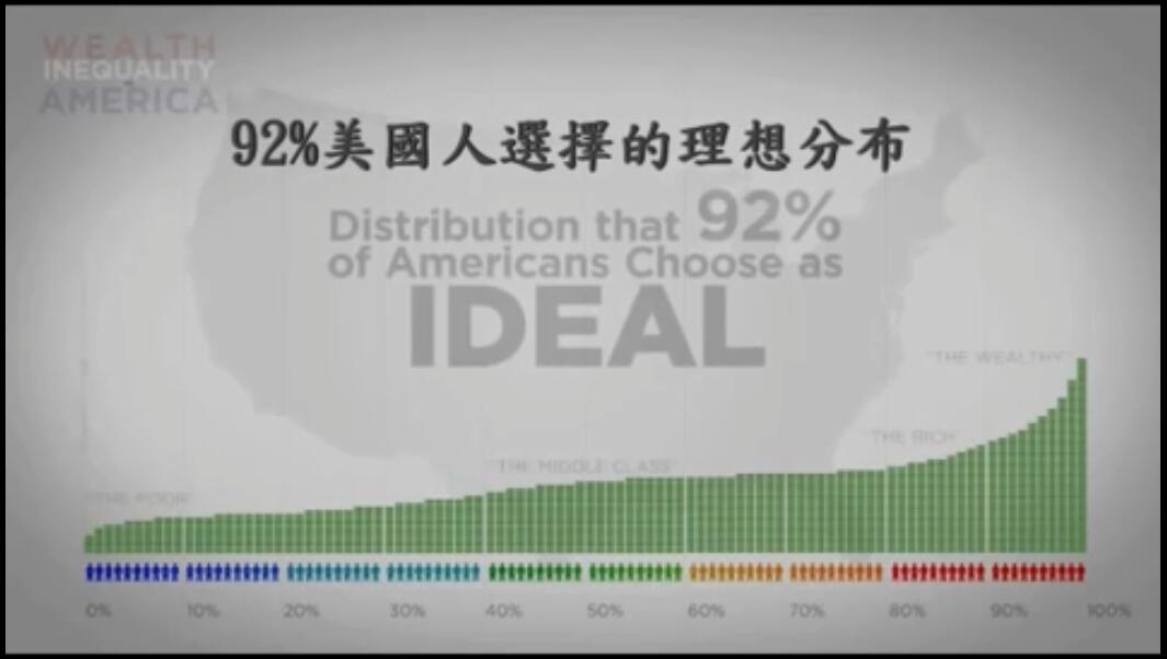 沒錯共和黨與民主黨的回答一致,十個人中有九個人,92%的美國人都同意,這是美國財富分佈的理想曲線。