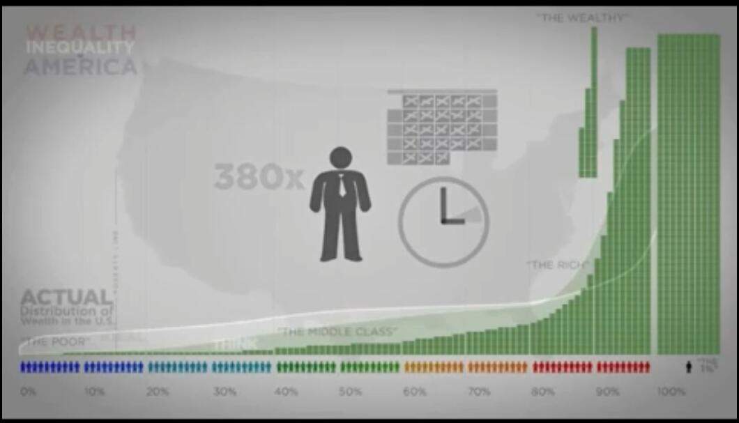 我相信富人賺錢也是靠努力的,但你真的認為一位CEO努力的程度,是他手下員工的380倍嗎?我不是説的底薪人員,不是清潔工,而是他手下的正式職員。一般的職員需要工作一個月以上,才能賺到CEO一小時賺到的錢。