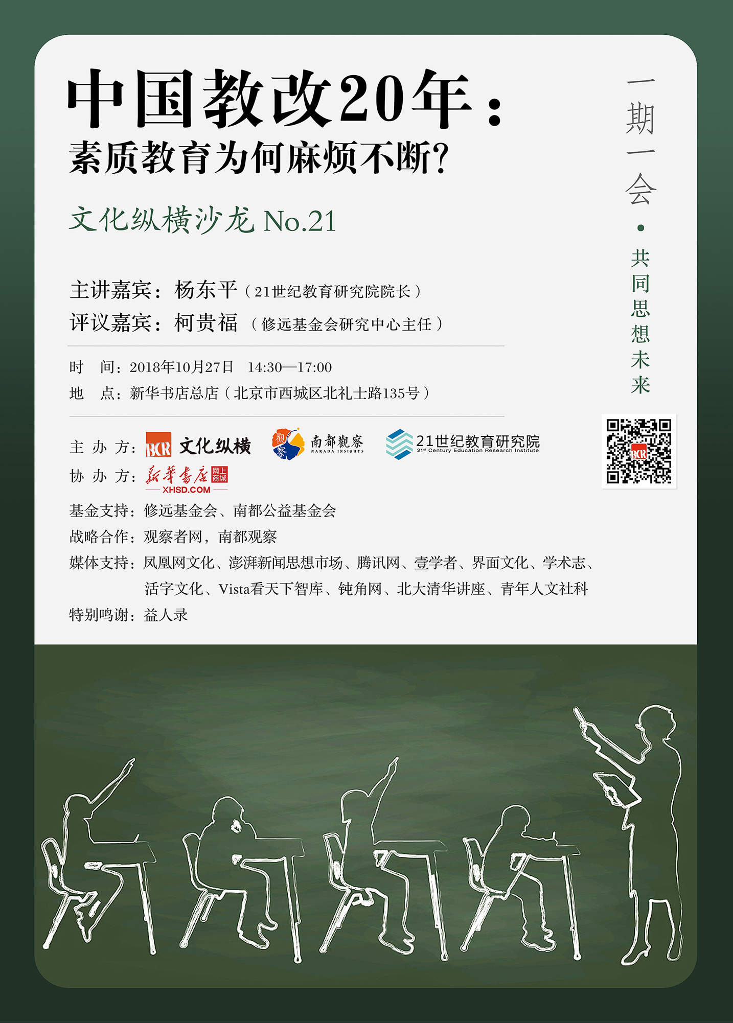 帶着這些問題,《文化縱橫》雜誌社特邀請了21世紀教育研究院院長,國家教育諮詢委員會委員楊東平做客“一期一會”主題沙龍,與讀者共同探討中國教育改革20年來的諸多癥結和可能的解決之道。