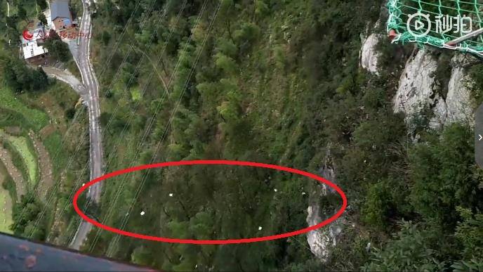 一畫外女子不斷地高聲喊話提醒,“師傅,你的錢掉了,這……還在飛呢!”其他人員也出於好奇,探頭向懸崖下方看去。