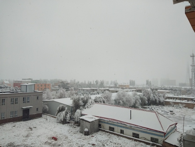 臨別的這一天,霍爾果斯飄落了今冬的第一場雪。早起從窗外望去,已是白茫茫一片。