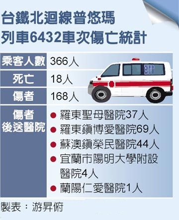 普悠瑪列車昨天下午經冬山站至蘇澳新站間的新馬站時,發生嚴重傾覆意外,鐵軌彎成U型、車廂翻疊成W形狀,疑有乘客被拋出車外,現場哀嚎聲四起,宛如人間煉獄,共造成全列車旅客366人中,18人死亡、187人不同程度受傷。這起事故不僅是普悠瑪上路後,也是台鐵37年來最慘重的意外!