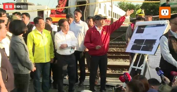 蔡英文是在陳菊等人陪同下,一早抵達事故現場,聽取台鐵局長鹿潔身等人報告後,她説,昨天發生此嚴重事故,所有人都非常傷心,在此時刻希望大家一起渡過難關。