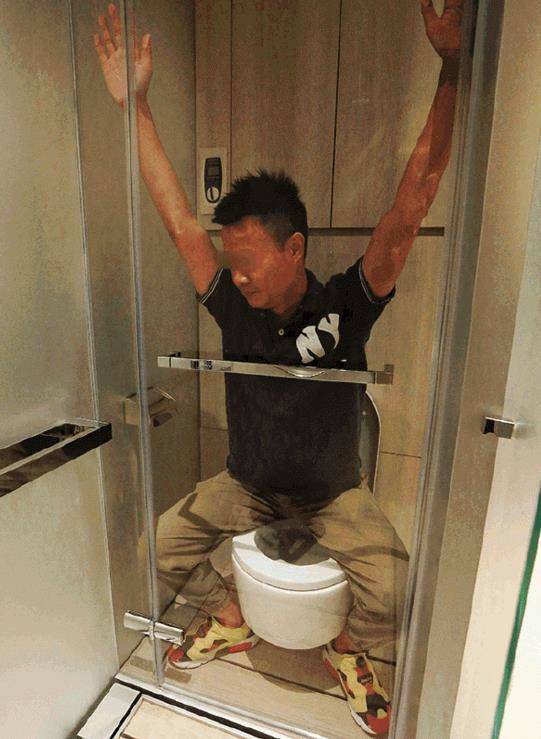 注意下圖這個衞生間,是使用馬桶的時候,顯然這個門是不能關閉的。