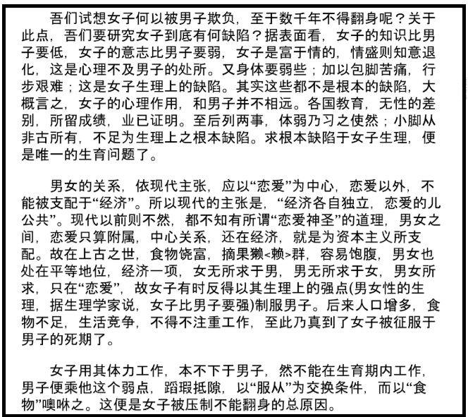 雖然我也覺得白左們的腦子有點問題,但我無法苟同“白左=惡”這樣的想法。不過,“一味援引外國人外國事為例子..很容易讓人反感”這一點確實是無法辯駁的。這裏拋磚引玉一下,貼張毛主席在1919年11月21日刊登在《女界鍾》上的言論。下次如果再聊到生育權的時候,想來這會是個不錯的佐證。順帶再一説,我覺得為何當我們談論女權時,會繞不開國外的例子,這也是一個很好的討論點。