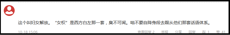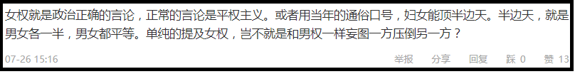 在觀網駐紮了三個月,每逢談到“女權”這個話題,不管是什麼內容,評論都會炸一波。今天索性截幾張圖來和大家討論一下。樣本可能不夠,歡迎大家評論補充