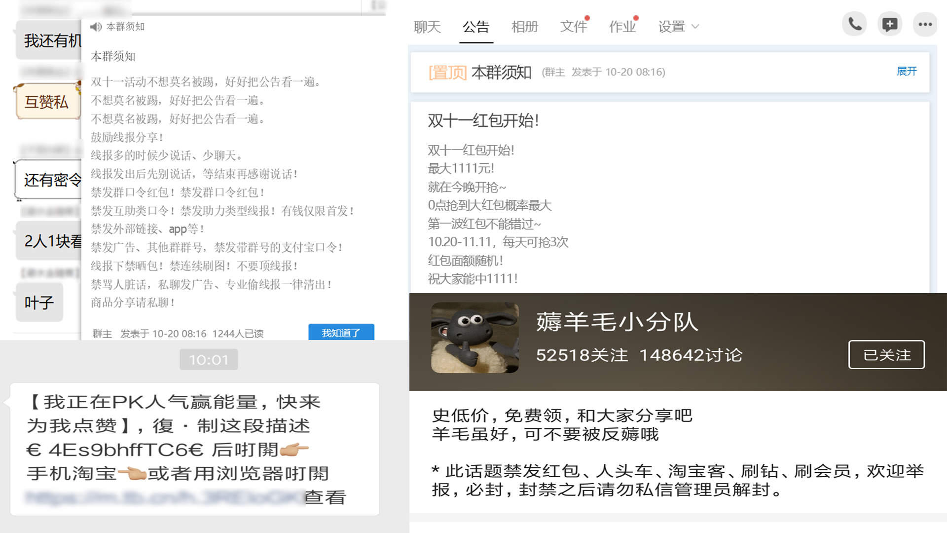 此外一些社區的薅羊毛話題、淘寶客組建的QQ羣提供的紅包活動提醒都是商家和部分用户喜聞樂見的現象。每年淘寶、天貓發出大量的紅包,用户個人難以知曉所有的訊息,而這些QQ羣和社區可以將紅包信息共享,用户可以獲得更多的優惠,淘寶也能獲得更多的流量。