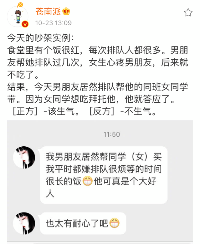 今日的情感話題:男朋友幫女同學排隊打飯,該不該生氣?_風聞