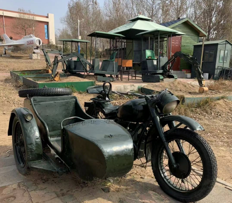 下圖是軍事博物館的展品:三輪斗子、飛機、挖掘機。
