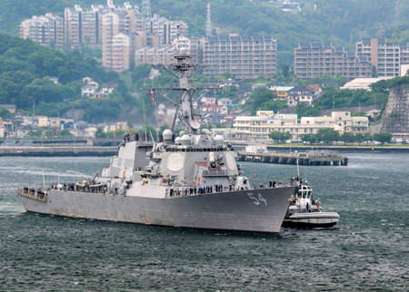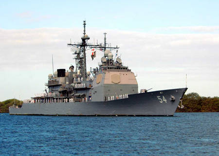 據報道,10月22日夜間,美國“提康德羅加”級巡洋艦“安提坦”號(CG54)和“伯克”級驅逐艦“威爾伯”號(DDG54)穿越台灣海峽,其間多艘中國戰艦伴隨跟蹤。在此前的7月7日夜間,還有過“伯克”級驅逐艦“本福德”號(DDG65)和“穆斯廷”號(DDG89)穿越台灣海峽。