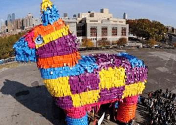 後來的皮納塔經過多年演變慢慢褪去了宗教色彩,變成一種象徵美好意義的遊戲形式,只要願意,任何時候任何地方都能開玩。製作容器也多從陶陶罐罐變成紙片,裏面裝滿糖果、點心、玩具,高高掛起來。小孩子們喜歡耀武揚威用棍棒自食其力來贏取戰利品,對於成年人,似乎也能有效發泄平日的壓力。