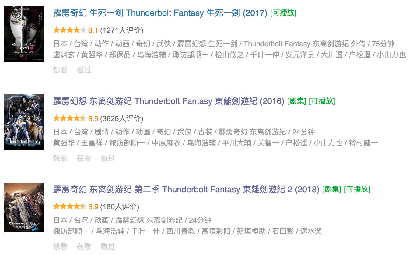 從內容質量上看,這幾部布袋戲作品在豆瓣上均獲得了8.9的高分。雖然參與打分的人數比較少,但是這至少説明在中國內地的霹靂核心粉“道友”們看來,《東離劍遊紀》的表現還是相當不錯的。