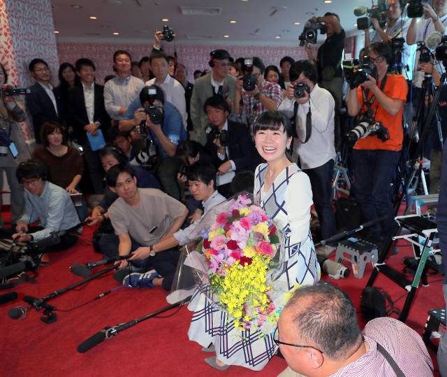 福原愛被媒體記者包圍。