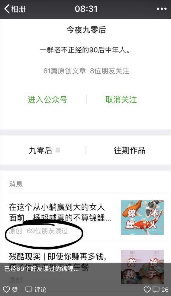 而且,在我手滑點到這個公號裏面時,發現在八點半的時候已經有69個好友讀過…
