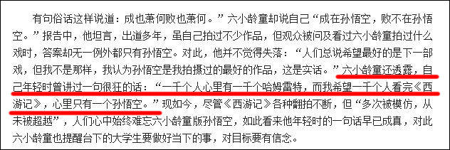 根據網易河北的報道,六小齡童在石家莊某大學做報告時,曾説過這麼一句話: